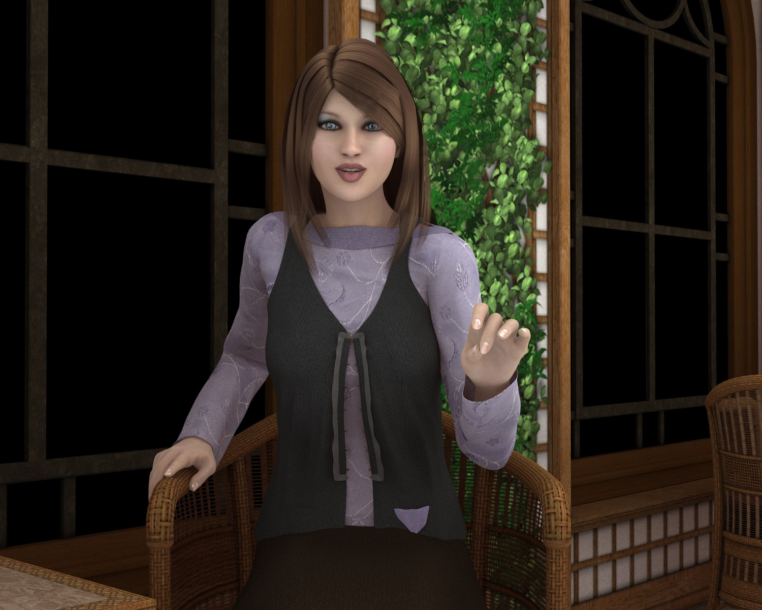 Skye: [shrugs] I see her more without alcohol these days, but she’s also more independent of me, too.   I haven’t seen her today.  She’s becoming much more her own person.  It’s good for her, but kind of sad, since I’d gotten used to always having her around, watching out for me.  So, I’m going through two separate types of withdrawal, sort of.  Three, really… [sighs] But I have Annabelle and my gamer friends to help me get by.